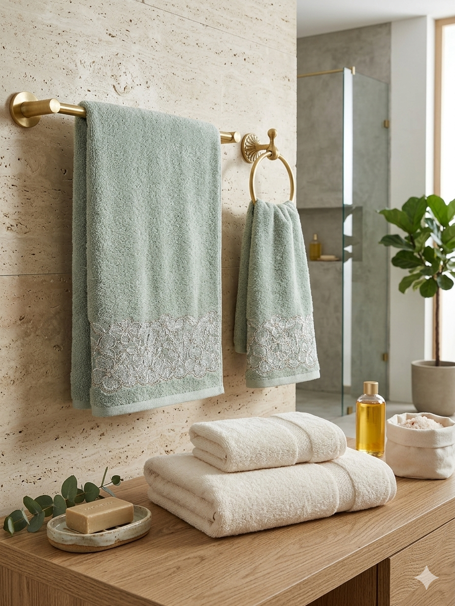 Özdilek Begonvil Hamam Seti Krem-Yeşil