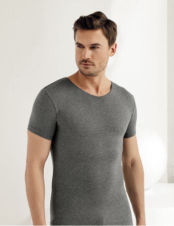 Şahinler Kısa Kol V Yakalı Likralı Süprem Atlet Koyu ME073 Gri