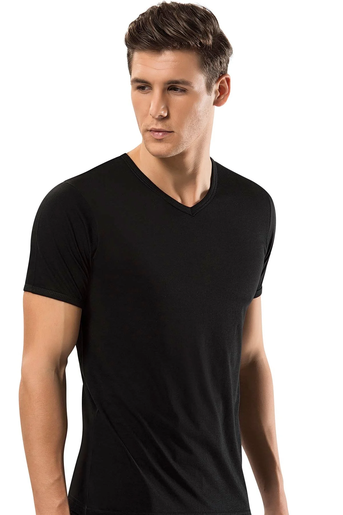 Erdem Gold Modal V Yaka Tişört 1551 Siyah