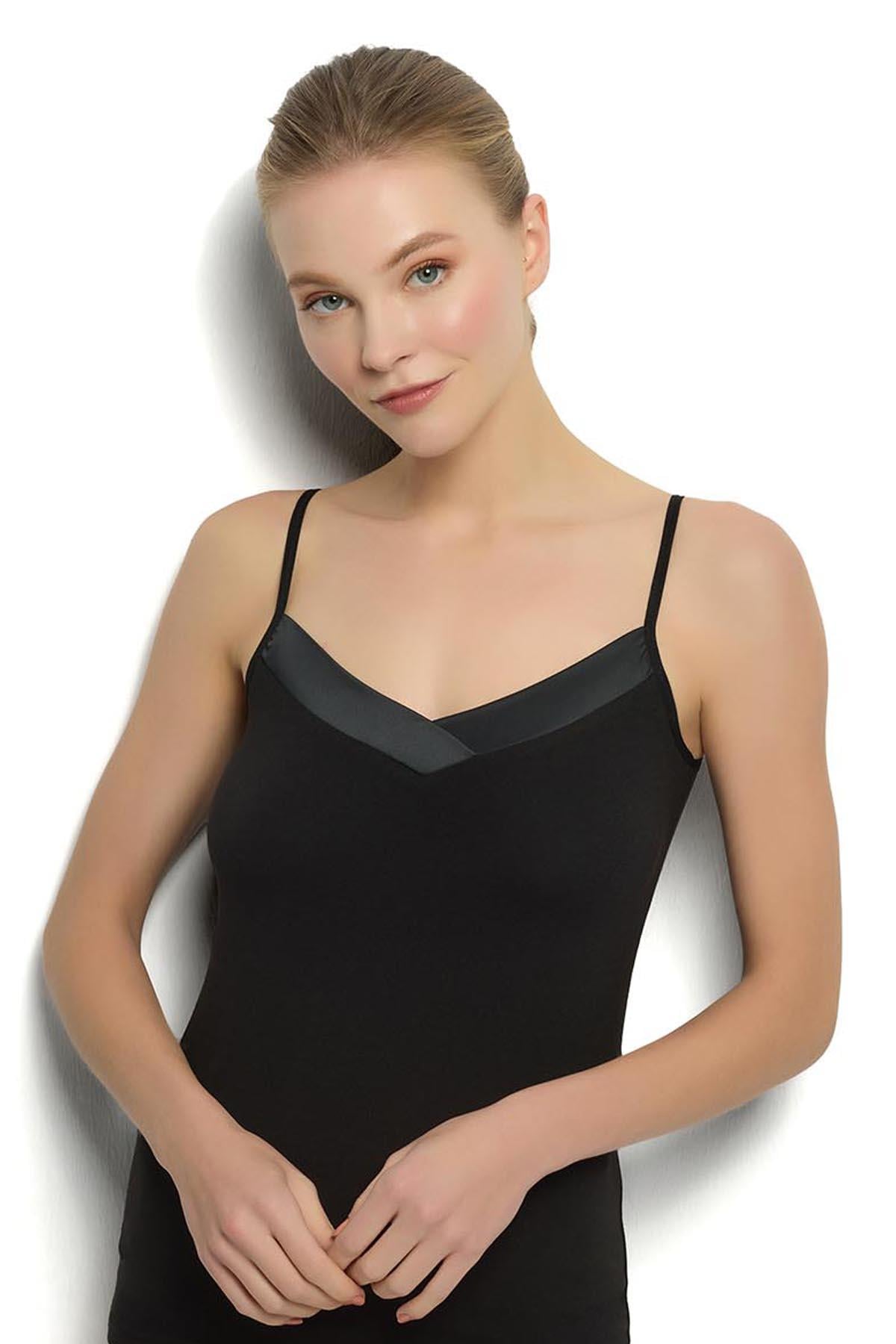Jiber Saten Yakalı İp Askılı Atlet 626 Siyah