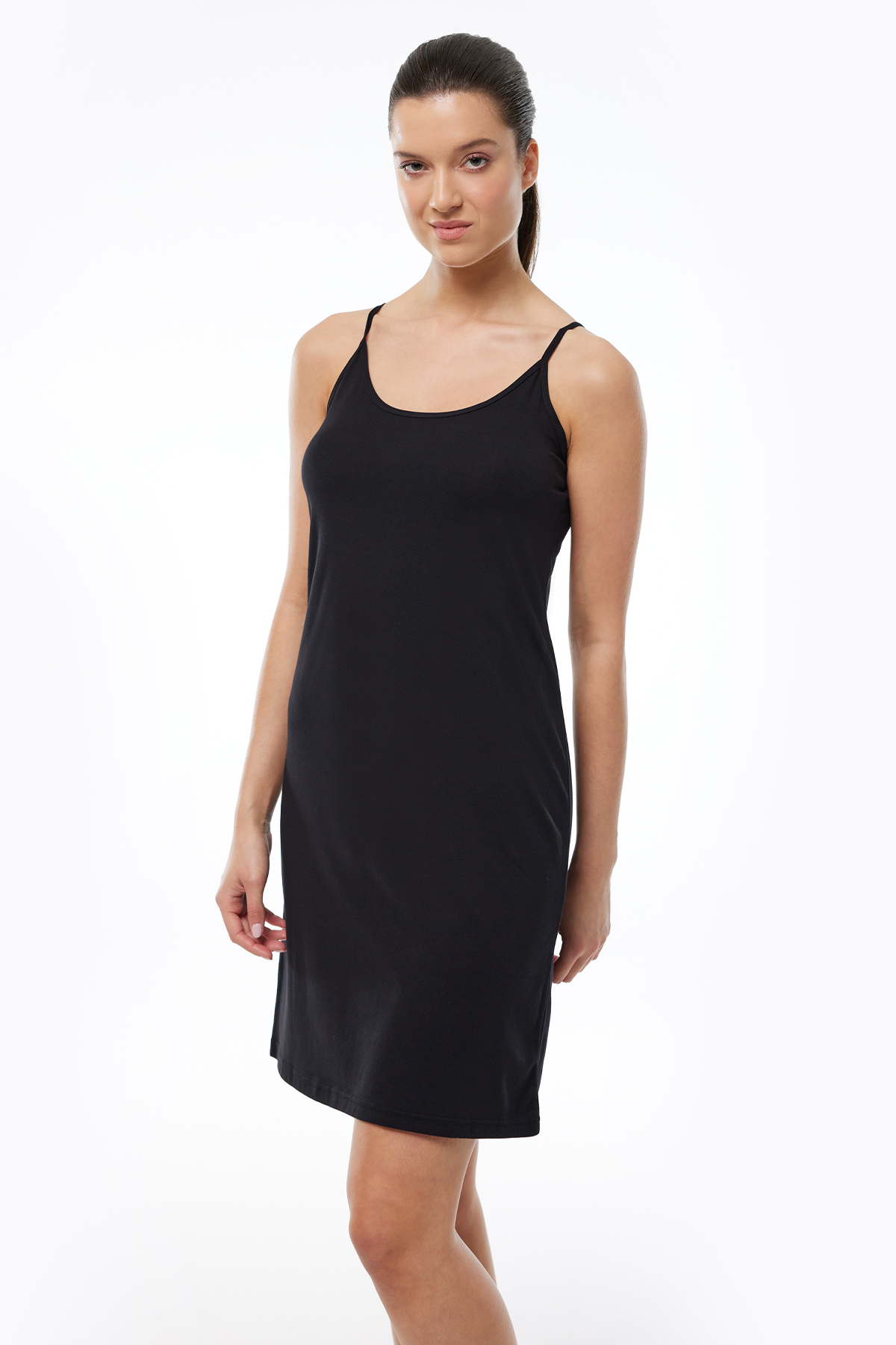 Malabadi Ayarlanabilir İp Askılı Geniş Elbise Astarı Modal Kombinezon 1060 Siyah