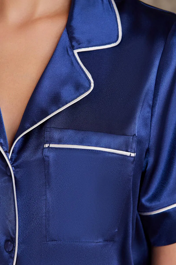 Pierre Cardin Saten Biyeli Pijama Takımı 1205 Lacivert