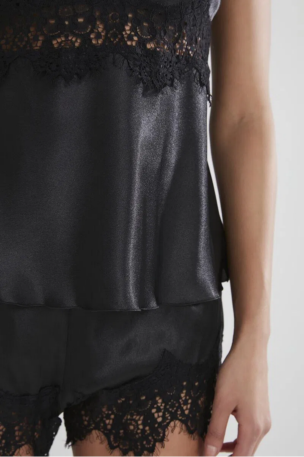 Pierre Cardin Saten Dantelli Şort Babydoll Takım 435 Siyah
