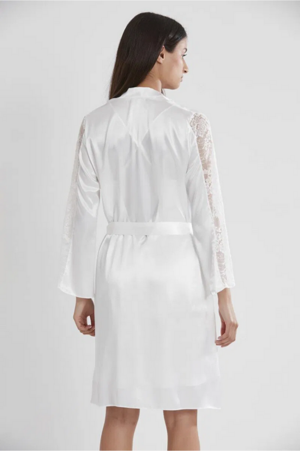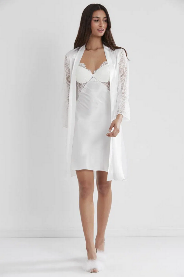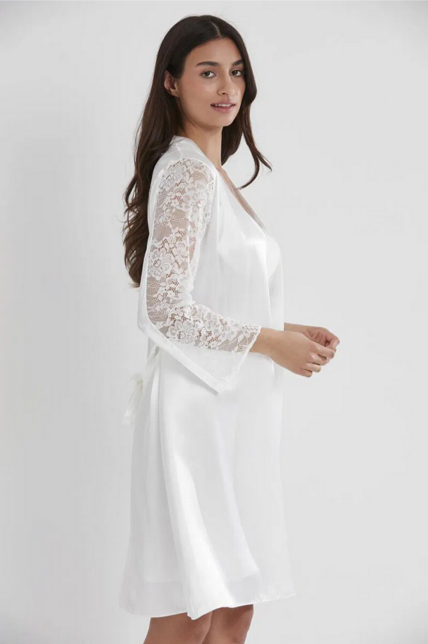 Pierre Cardin Saten Dantelli Kadın Gecelik ve Sabahlık Takımı 4025 Ekru