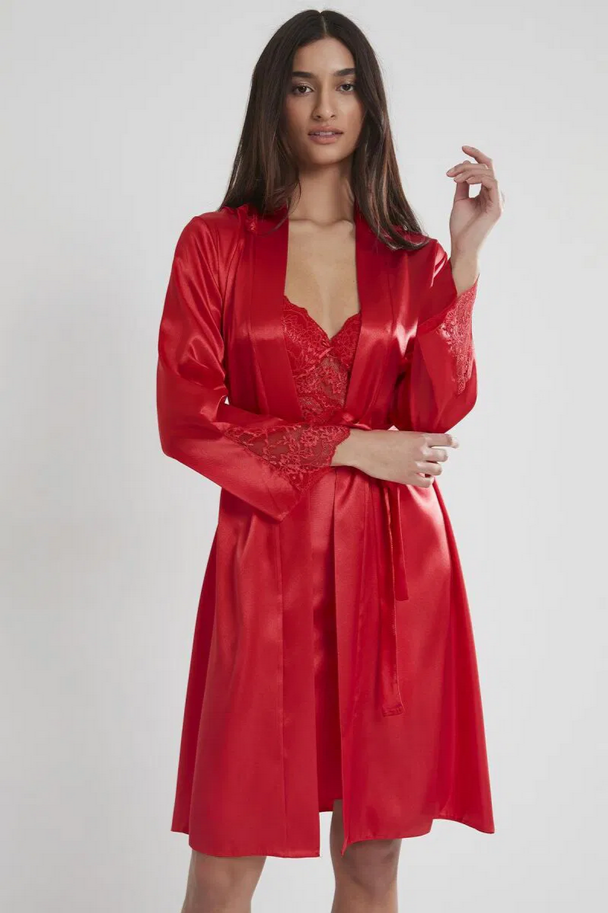 Pierre Cardin Saten Dantelli Kadın Gecelik ve Sabahlık Takımı 4050 Kırmızı