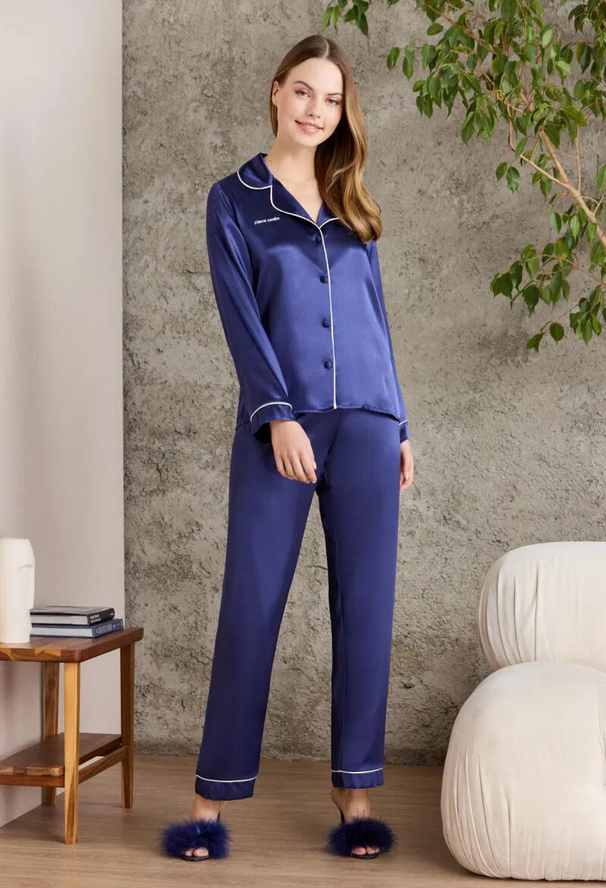 Pierre Cardin Saten Biyeli Pijama Takımı 1200 navy
