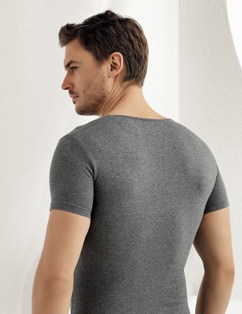 Şahinler Kısa Kol V Yakalı Likralı Süprem Atlet Koyu ME073 Gri