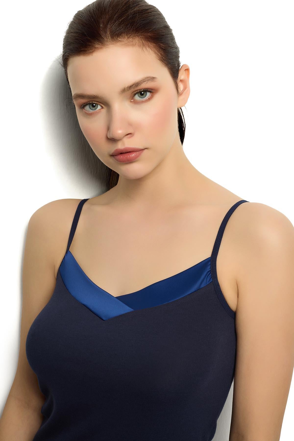 Jiber Saten Yakalı İp Askılı Atlet 626 Lacivert