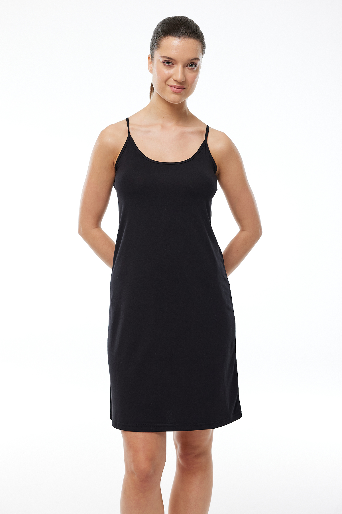 Malabadi Ayarlanabilir İp Askılı Geniş Elbise Astarı Modal Kombinezon 1060 Siyah