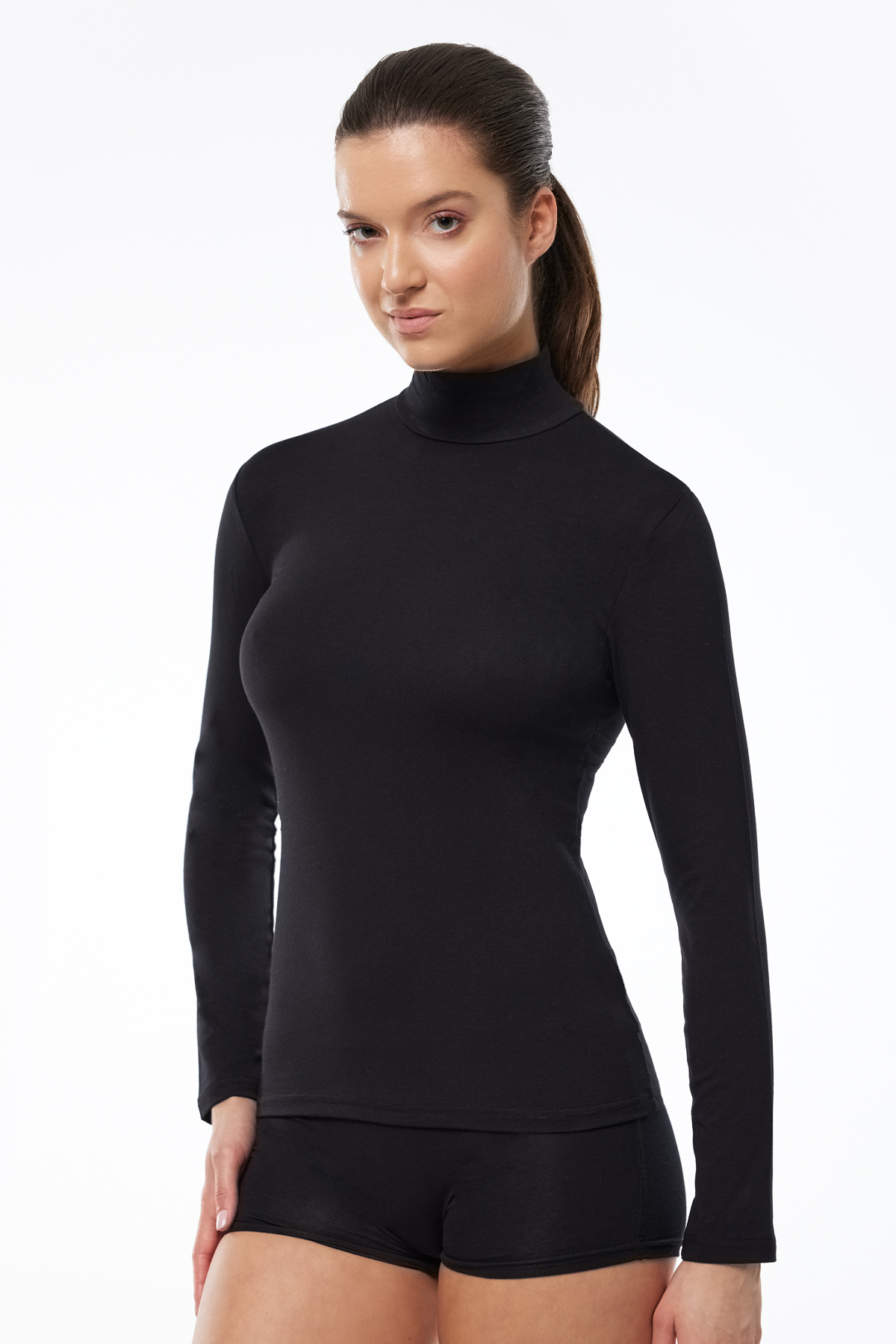 Malabadi Uzun Kollu Yarım Balıkçı Yaka Modal Body 180 Siyah