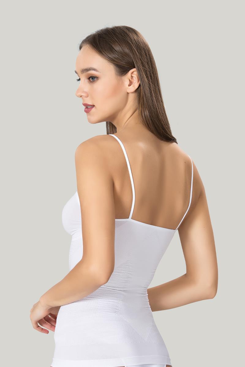%90 Polyamide, %10 Elastane Olarak üretilmiştir. Orjinal paketinde. Zarif parlak dokusu ve vücudu şekillendiren toparlayıcı yapısıyla hem estetik hem konfor sunar. İnce askılı ve dikişsiz tasarımı sayesinde kıyafetlerin altında pürüzsüz bir görünüm sağlar. Korse etkili yapısı bel bölgesini toparlarken yumuşak dokusu ile tüm gün rahatlık sağlar.