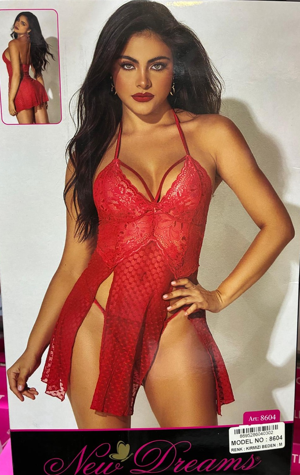 New Dreams 8604, kırmızının vazgeçilmez cazibesini modern yırtmaç detaylarıyla birleştirmek isteyenler için idealdir. Hem şık tasarımı hem de vücut hatlarını zarifçe vurgulayan kesimiyle gardırobunuzun en çarpıcı parçalarından biri olmaya adaydır.