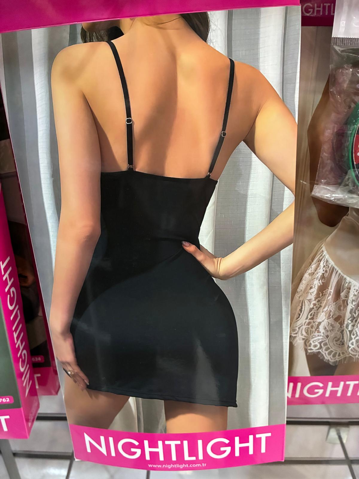 NIGHTLIGHT Siyah Sırt Dekolteli Mini Saten Gecelik