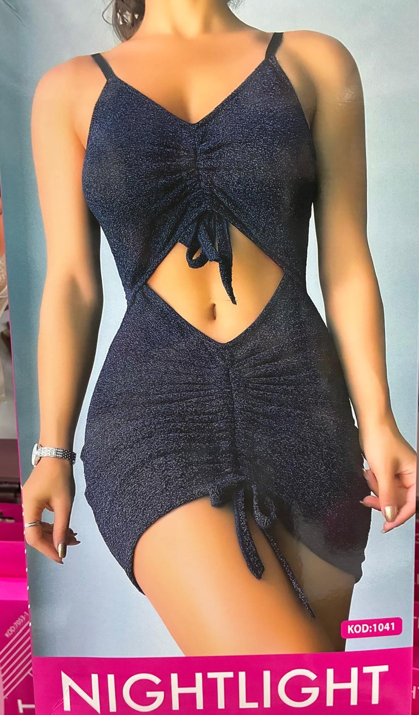 NIGHTLIGHT koleksiyonunun en ışıltılı parçalarından biri olan bu tasarım, modern kesimi ve iddialı detaylarıyla stilinizi geceye taşıyor. Lacivert simli kumaşın yarattığı yıldızlı gökyüzü etkisi, vücut hatlarını zarifçe ortaya çıkaran pencereli tasarımıyla birleşerek büyüleyici bir görünüm sunar. ✨