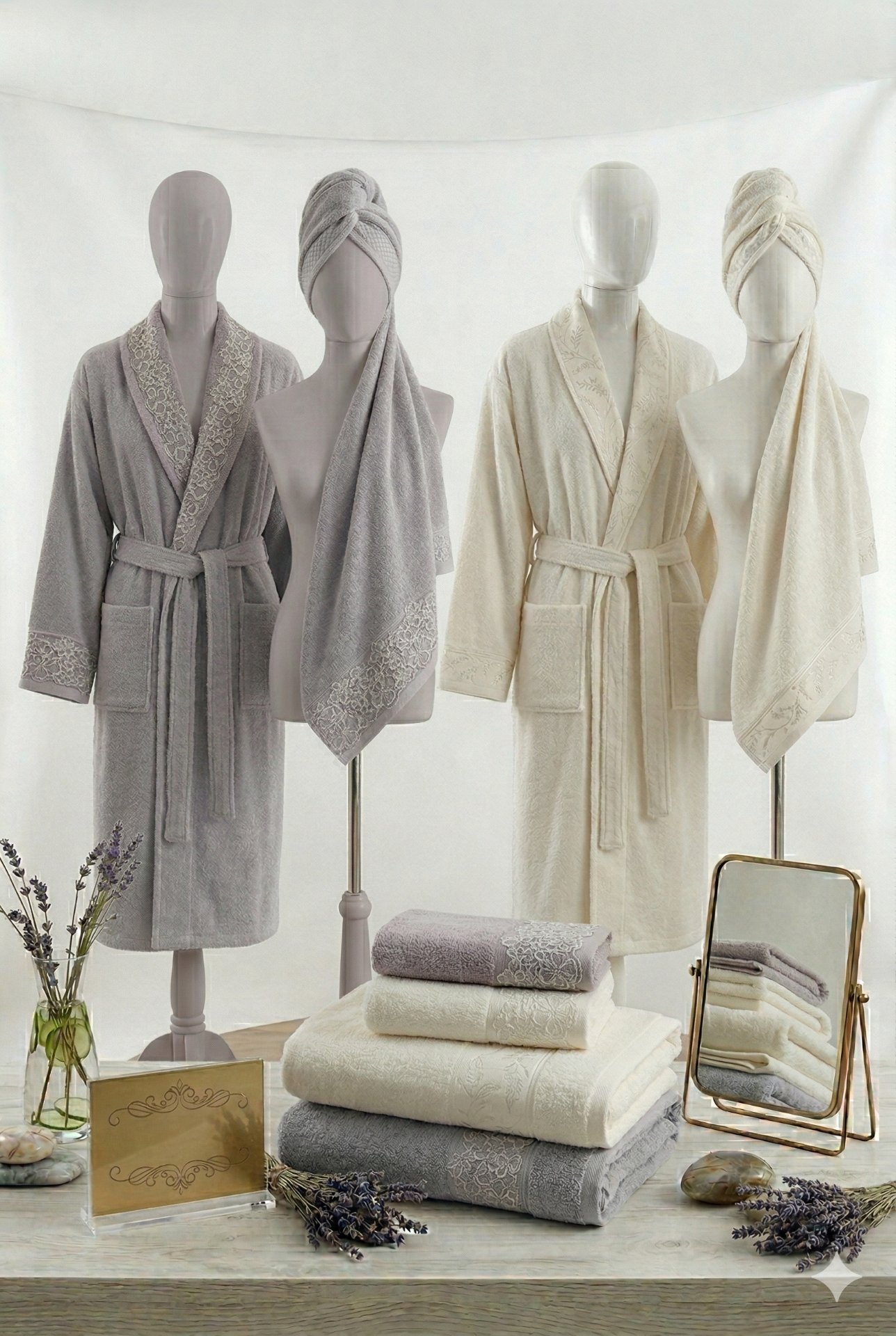 2 Adet Bornoz: Genellikle standart beden yapısında (Bay: L/XL - Bayan: S/M), şal yaka veya kapüşonlu modellerden oluşur.