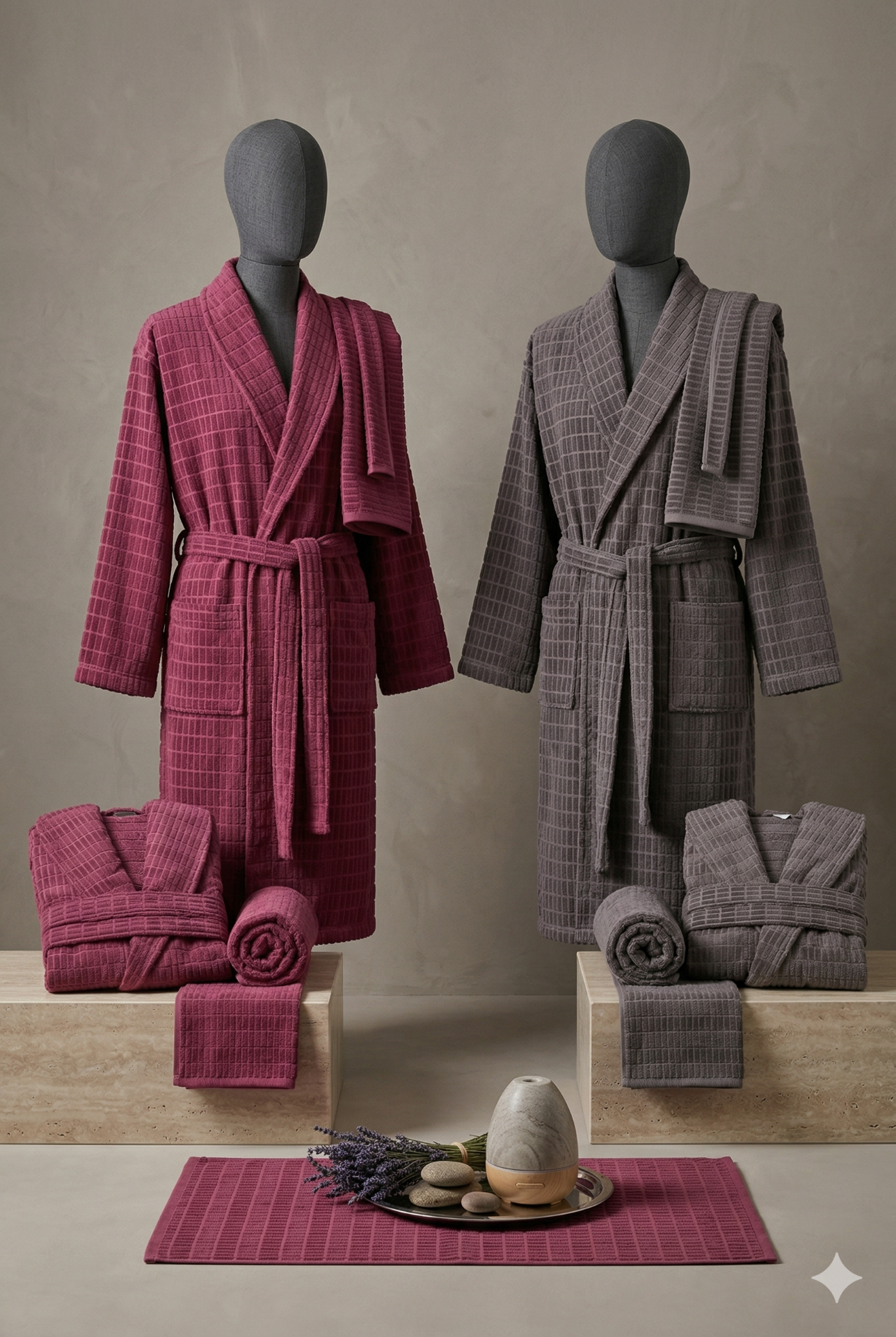 Özdilek Lano Aile Seti, modern banyoların vazgeçilmezi olan kontrast renk uyumunu (Bordo ve Gri), üstün pamuk kalitesiyle birleştiriyor. Yüksek su emiciliği ve yumuşak dokusuyla banyo keyfinizi tamamlayan bu set, uzun ömürlü kullanım için özel olarak tasarlanmıştır.
