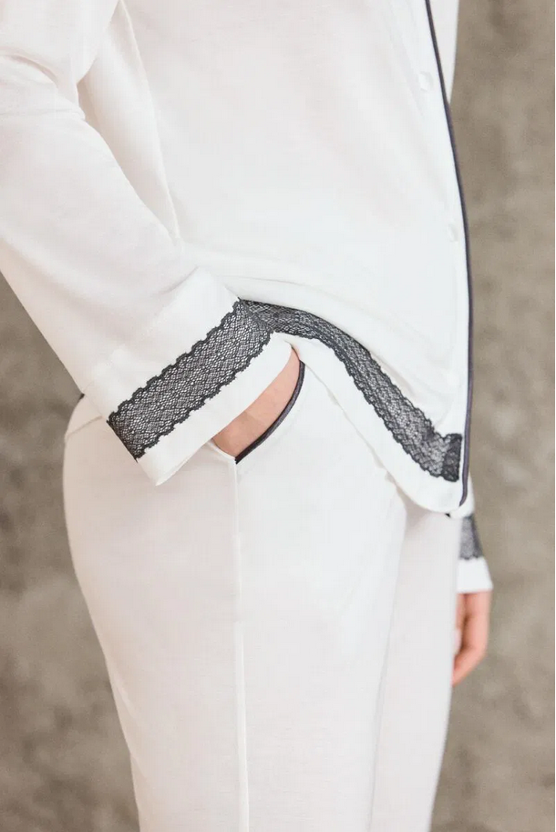 Pierre Cardin Penye Biyeli Dantelli Pijama Takımı 2200 Ekru