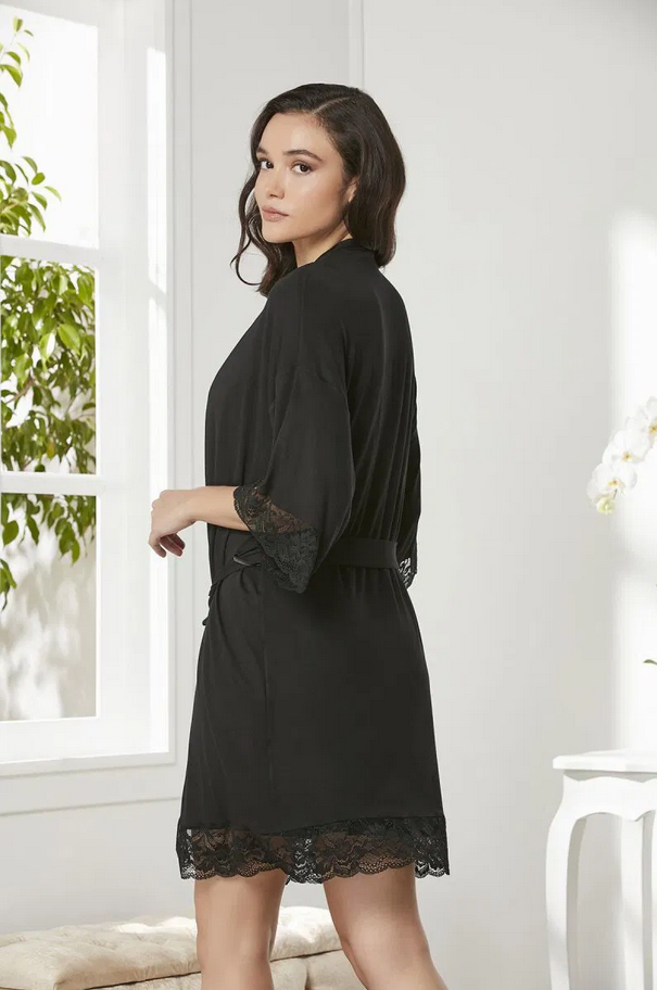 Pierre Cardin Penye Dantelli Gecelik ve Sabahlık Takım 4020 Siyah