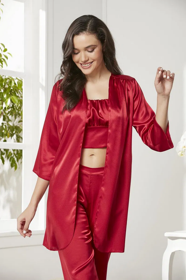 Pierre Cardin Saten 3'lü Pijama Takımı 2075 Kırmızı