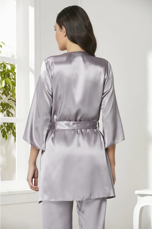 Saten 3'lü Pijama Takım - 3 parçadan oluşmaktadır. Sabahlık , Pijama Üst & Pijama Alt, orijinal kutu içerisinde, birlikte paketlenmiştir.