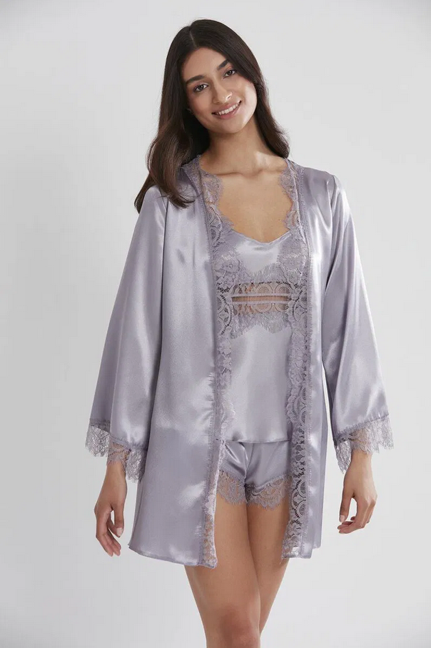 Pierre Cardin Saten Dantelli 3'lü Sabahlık Takım 2490 Royal