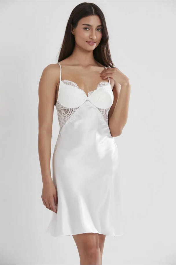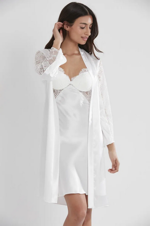 Pierre Cardin Saten Dantelli Kadın Gecelik ve Sabahlık Takımı 4025 Ekru