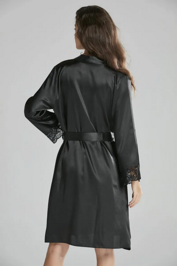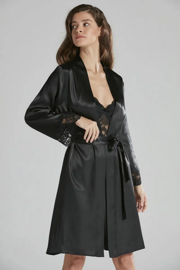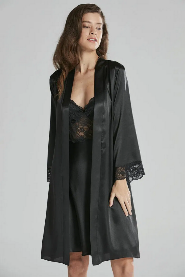Pierre Cardin Saten Dantelli Kadın Gecelik ve Sabahlık Takımı 4265 Siyah