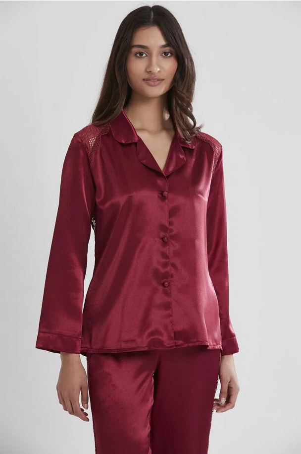 Pierre Cardin Saten Dantelli Pijama Takımı 1438 Bordo