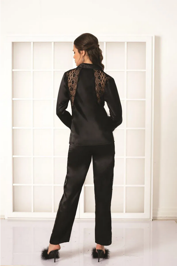 Pierre Cardin Saten Dantelli Pijama Takımı 1438 Siyah